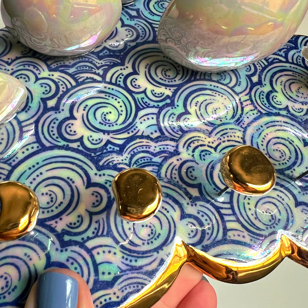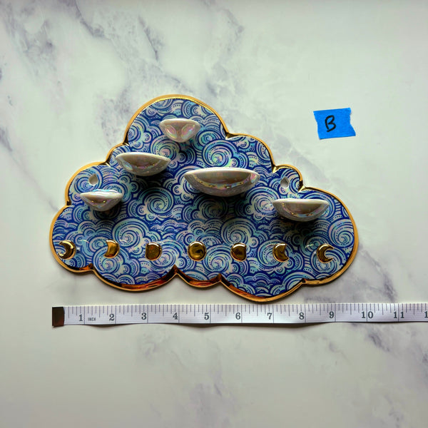 5 Dish Cloud Jewelry Wall Hanging Necklace Display with Ring Dishes B