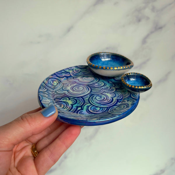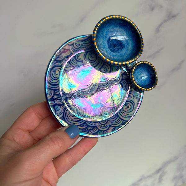 Cloud Dish Iridescent Altar Ring Jewelry Tray 2 lil Dishes A