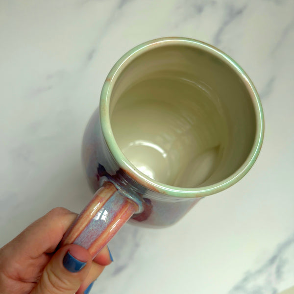- This handmade mug features a beautiful abalone shell crystal embedded at its center.
