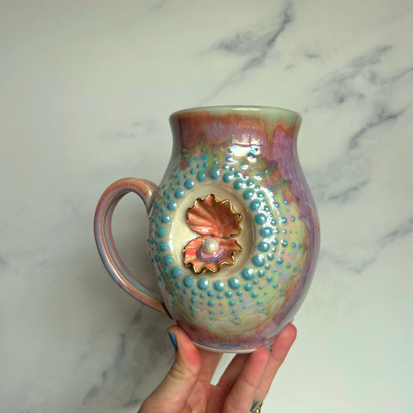 Pearl Clam Mug, Iridescent Porcelain Pottery Mug