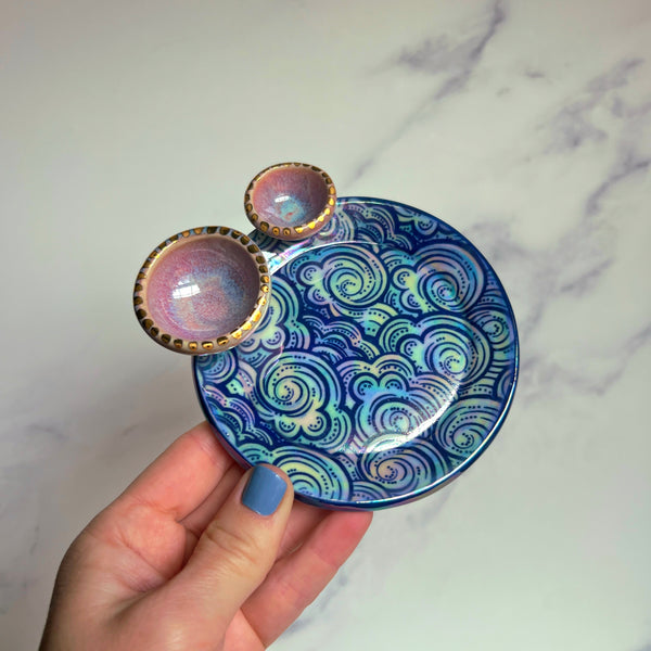 2 Dish Cloud Tray, Iridescent Altar Ring Jewelry Tray Pink Dishes E
