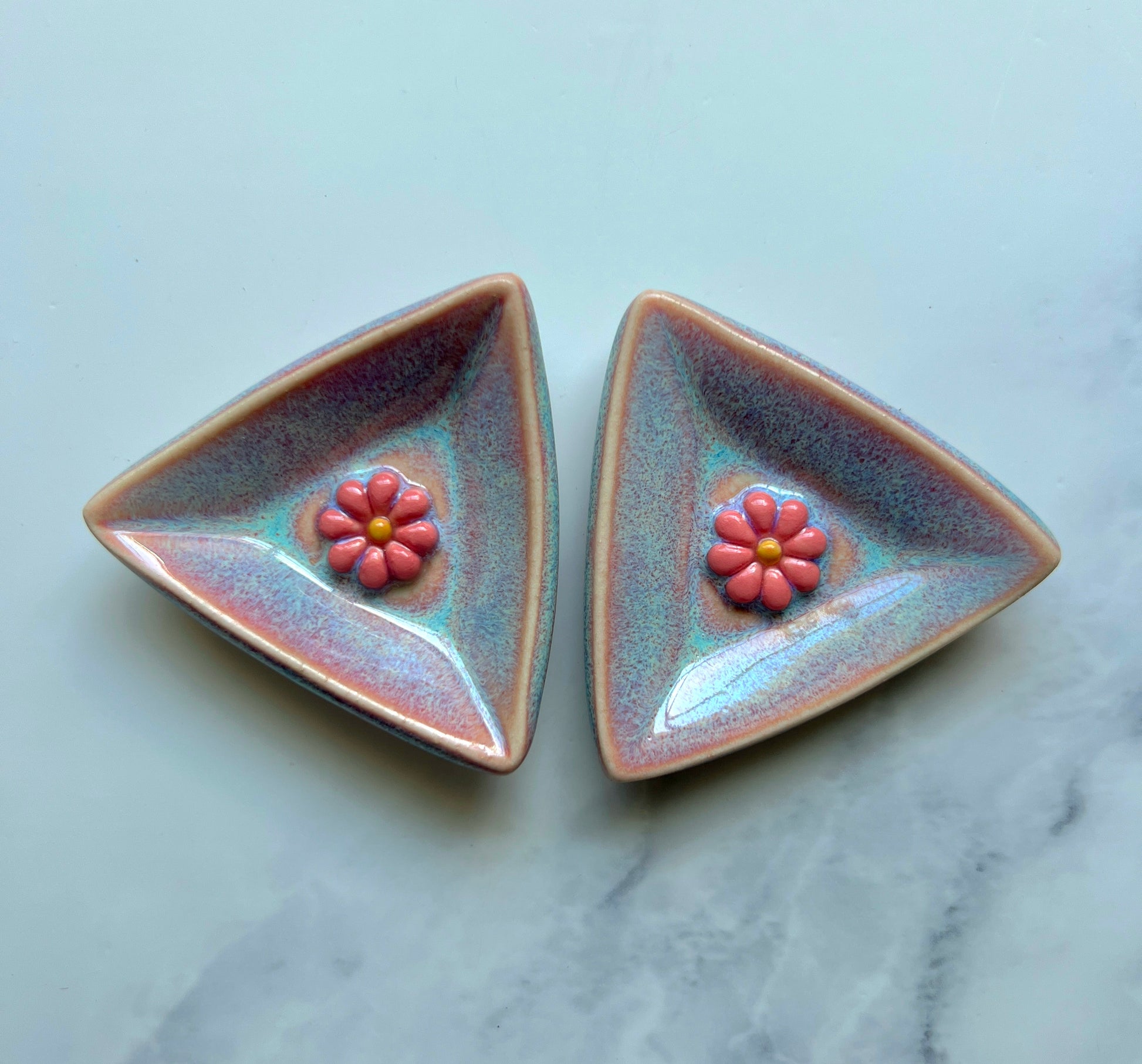 2 Piece Set -Daisy Flower Triangle Dish Altar Ring Jewelry Tray
