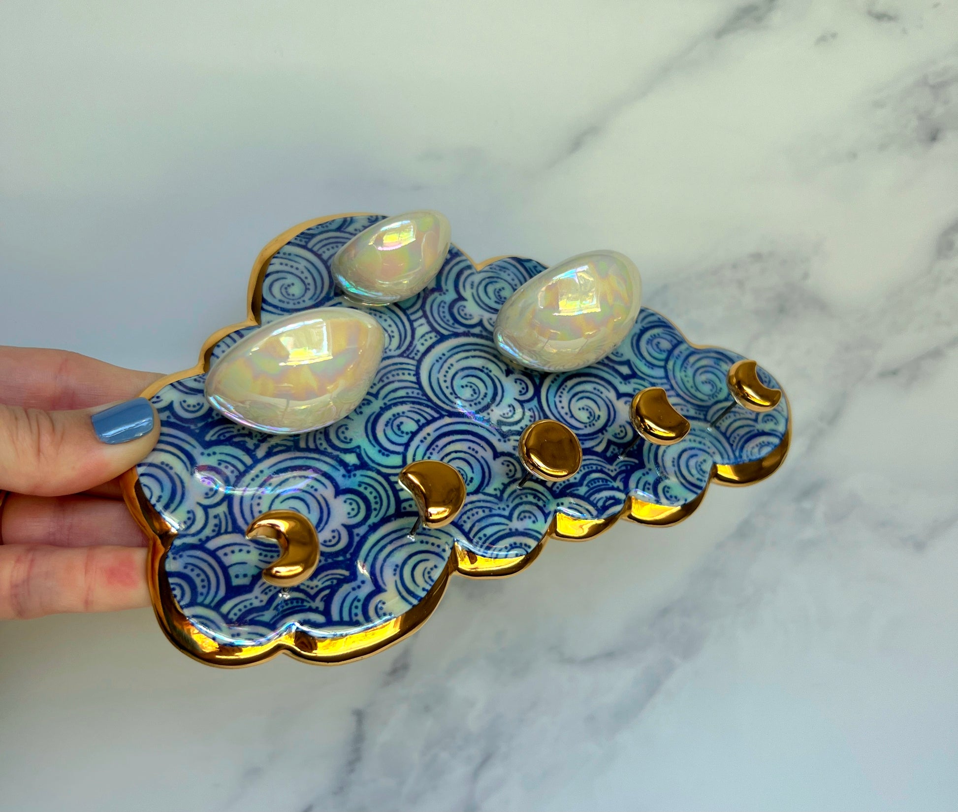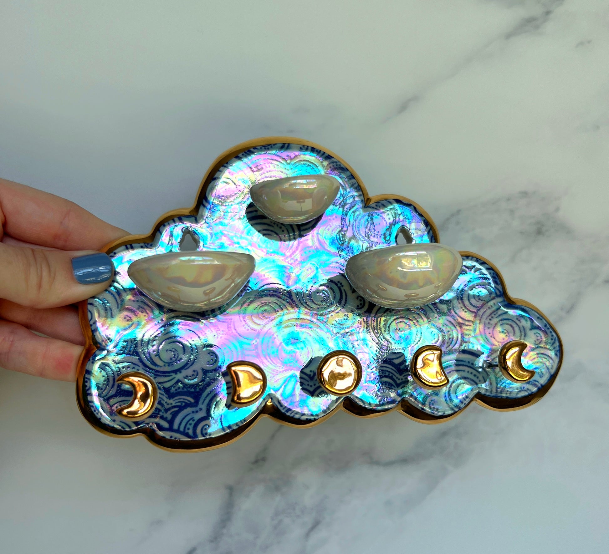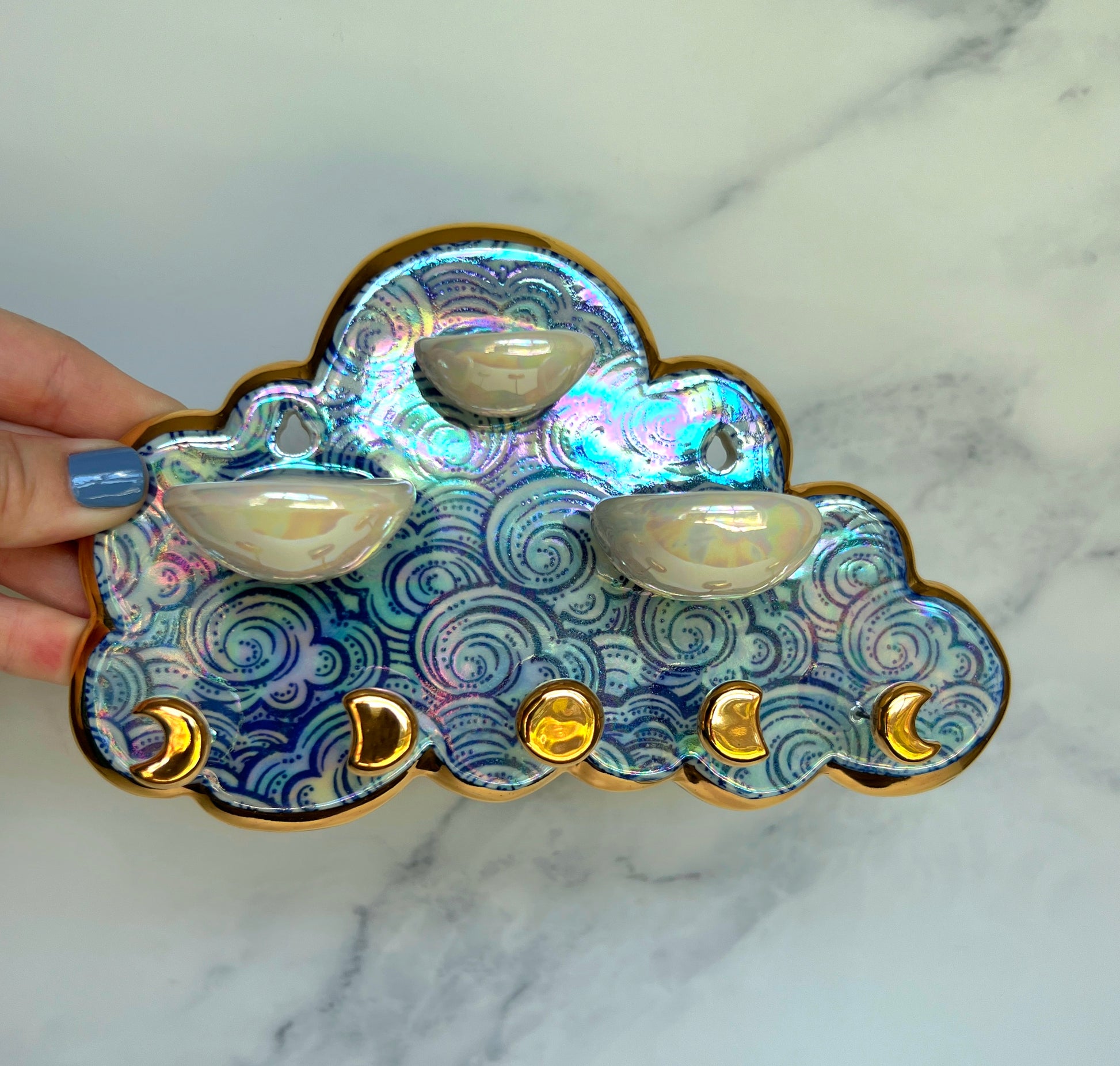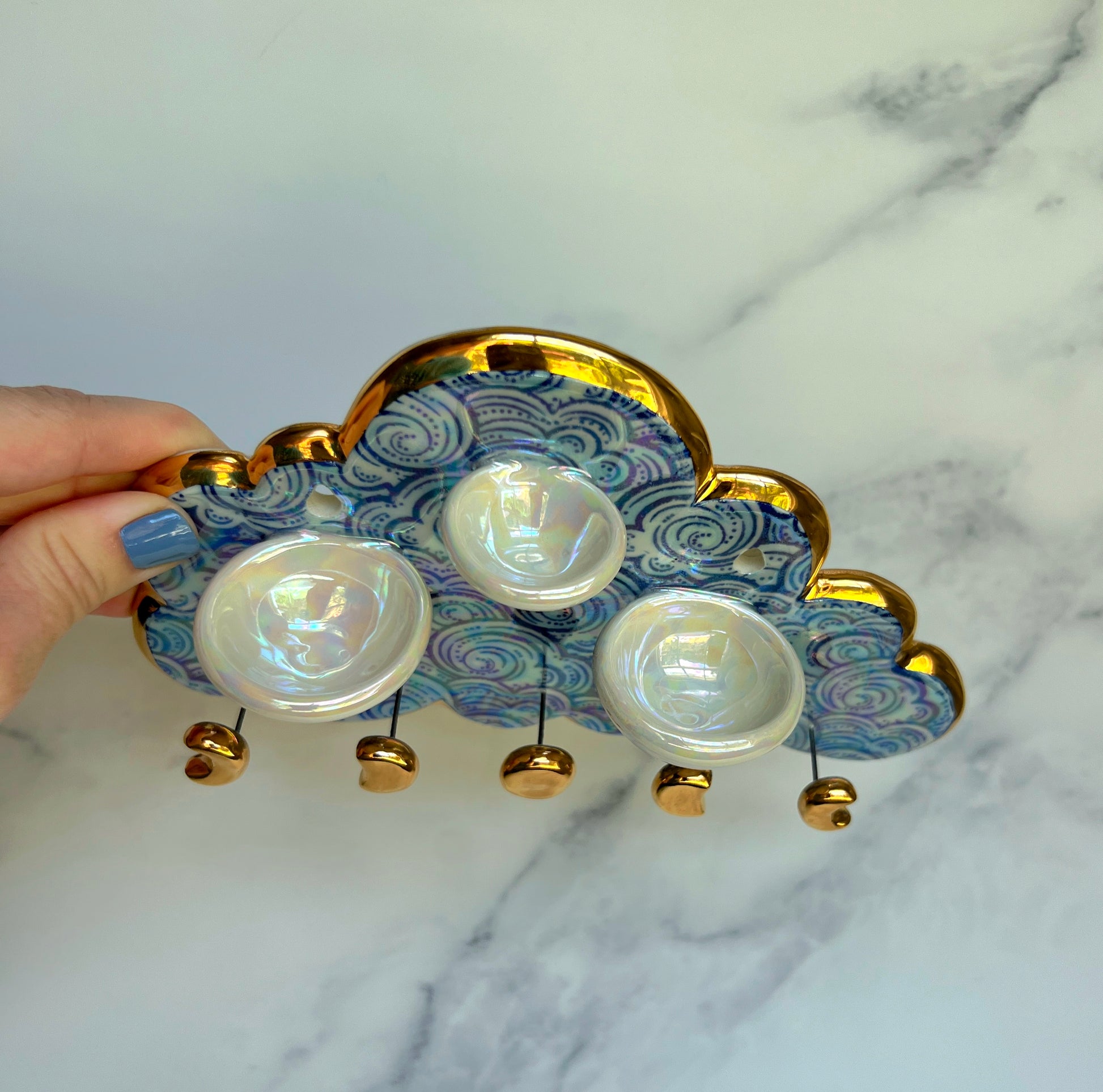 3 Dish Cloud Jewelry Wall Hanging Necklace Display with Ring Dishes #1