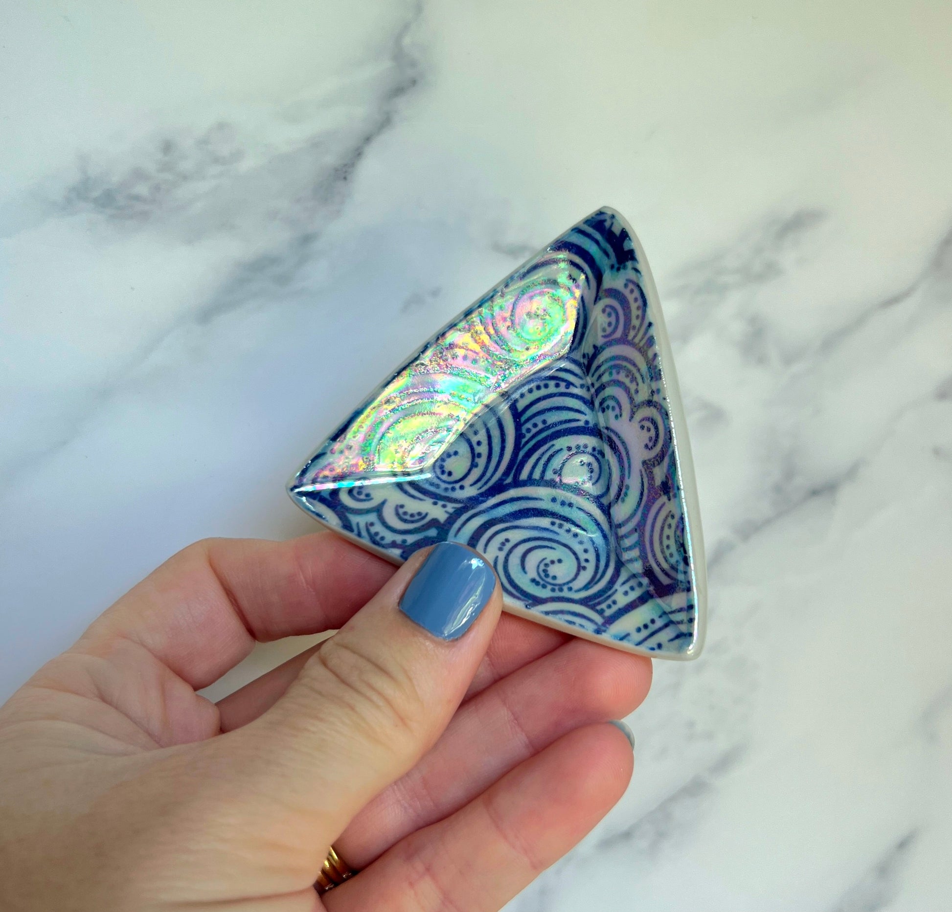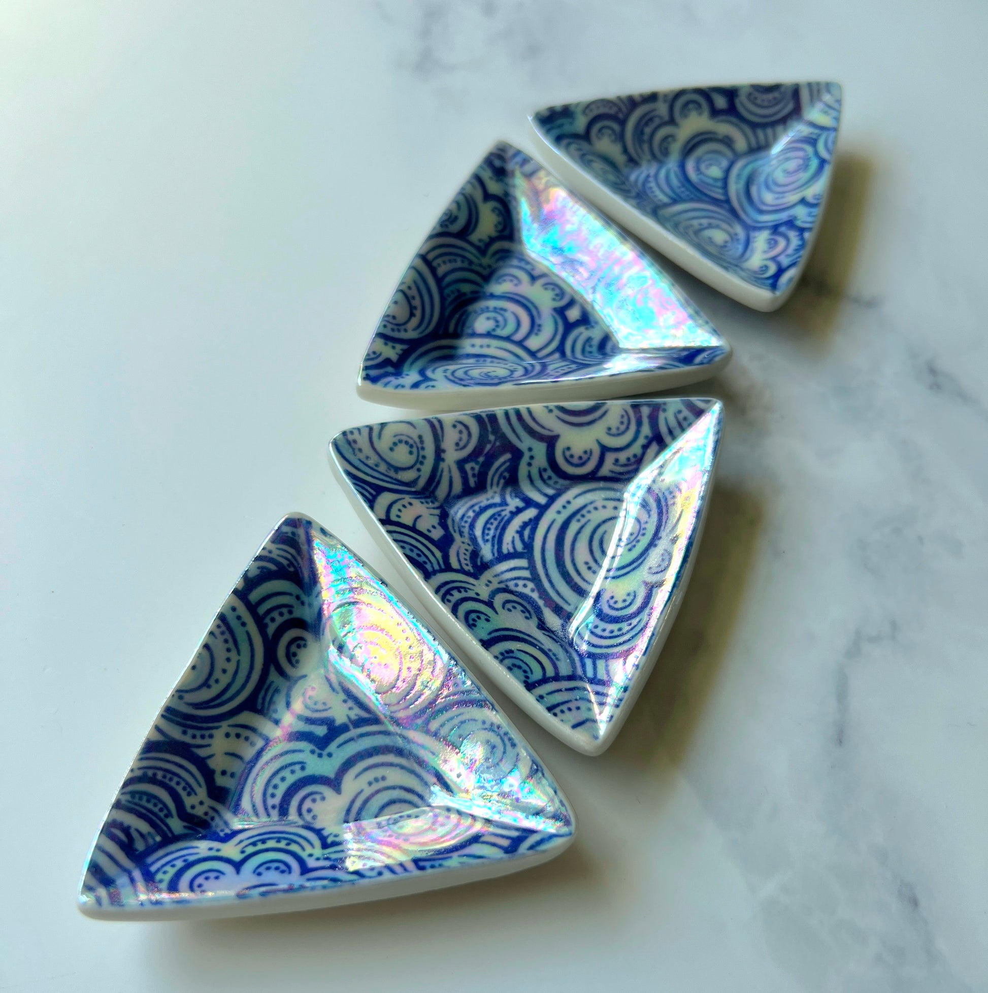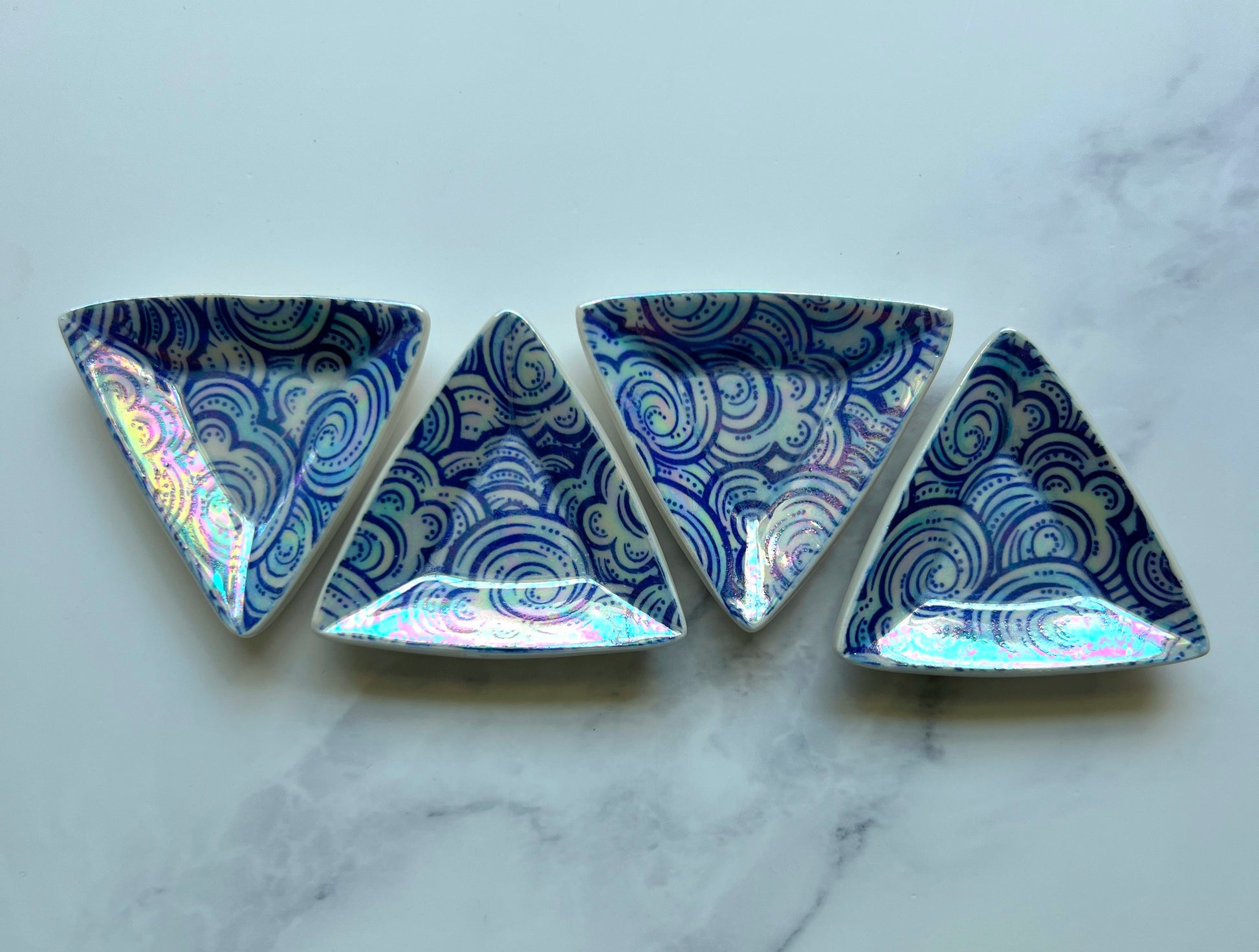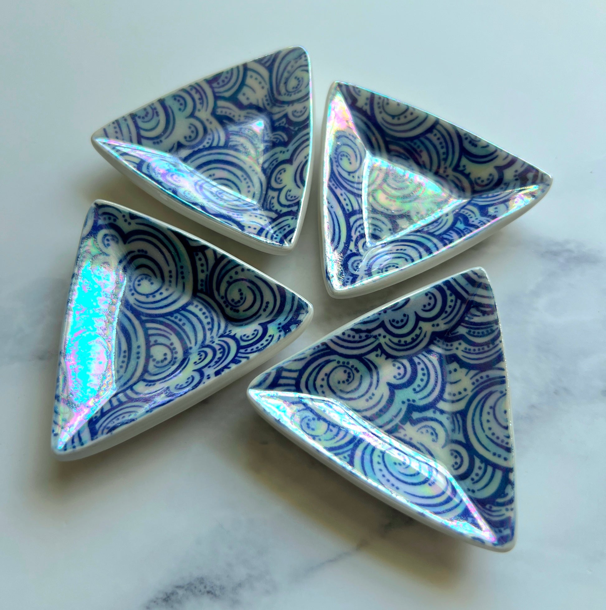 4 Piece Set - Cloud Triangle Dish Iridescent Altar Ring Jewelry Tray
