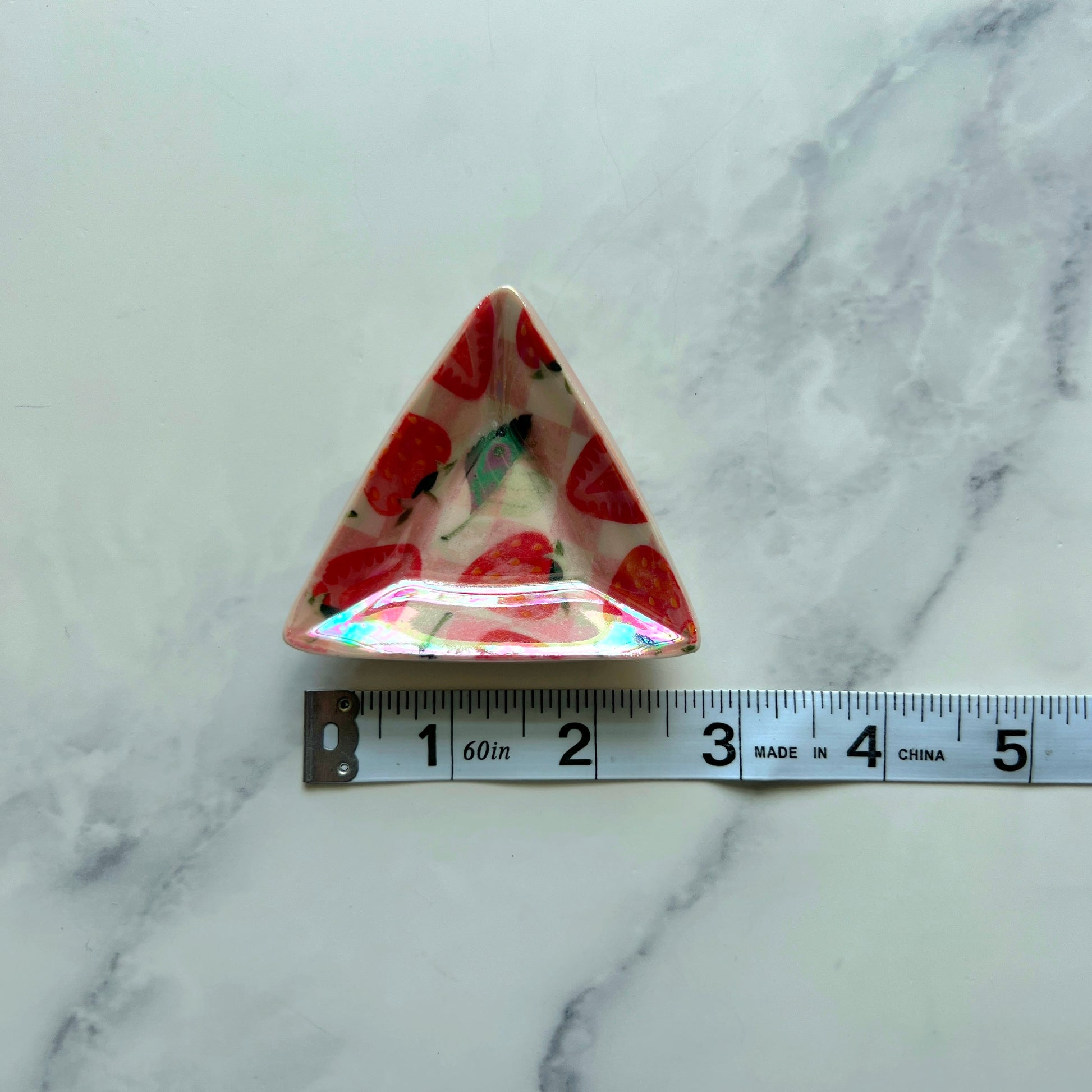 4 Piece Set - Strawberry Triangle Dish Iridescent Altar Ring Jewelry Tray
