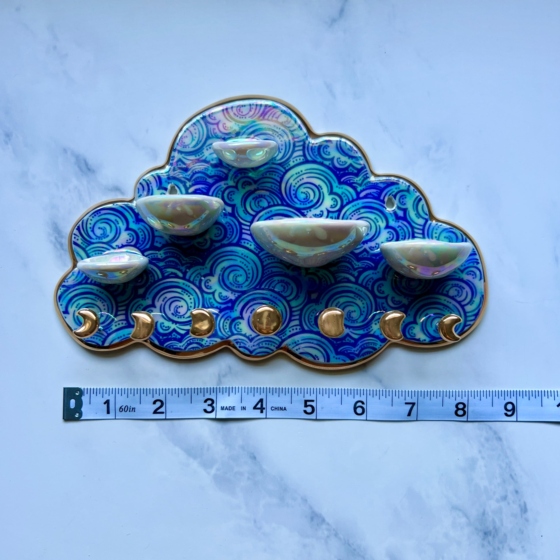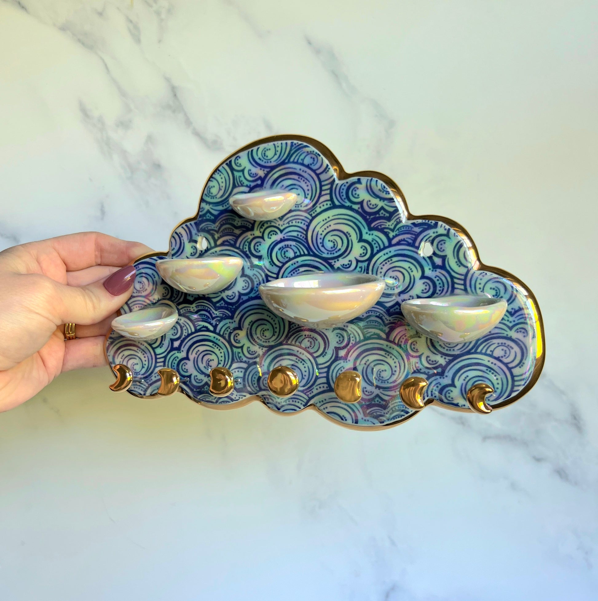PRE-ORDER Larger 5 Dish Cloud Jewelry Wall Hanging Necklace Display with Ring Dishes