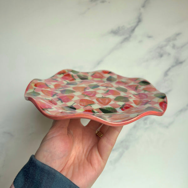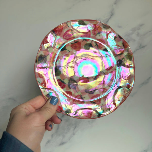 Fluted Strawberry Plate, Iridescent Tray Dish