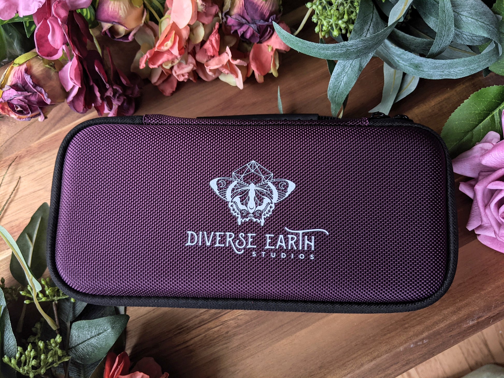 Made with high quality oxford fabric in a deep midnight mulberry color that glimmers and the beautiful Diverse Earth Studios butterfly logo on the front.