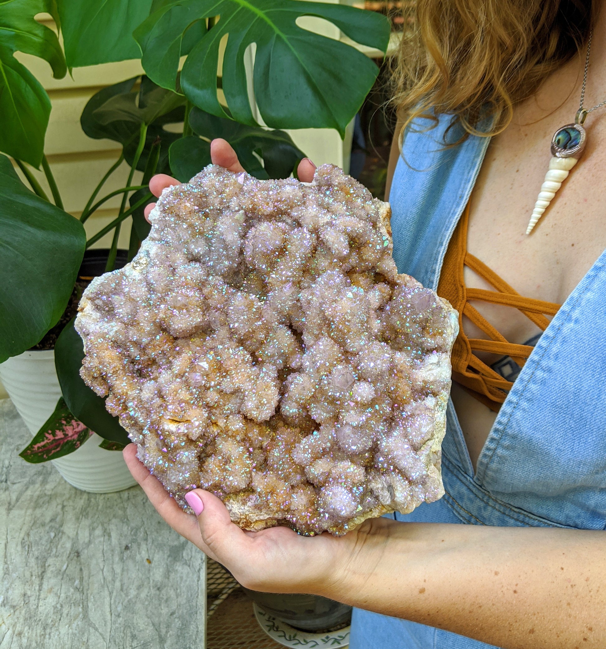 Attract all the loving energy with this beautiful, giant angel aura spirit quartz cluster.