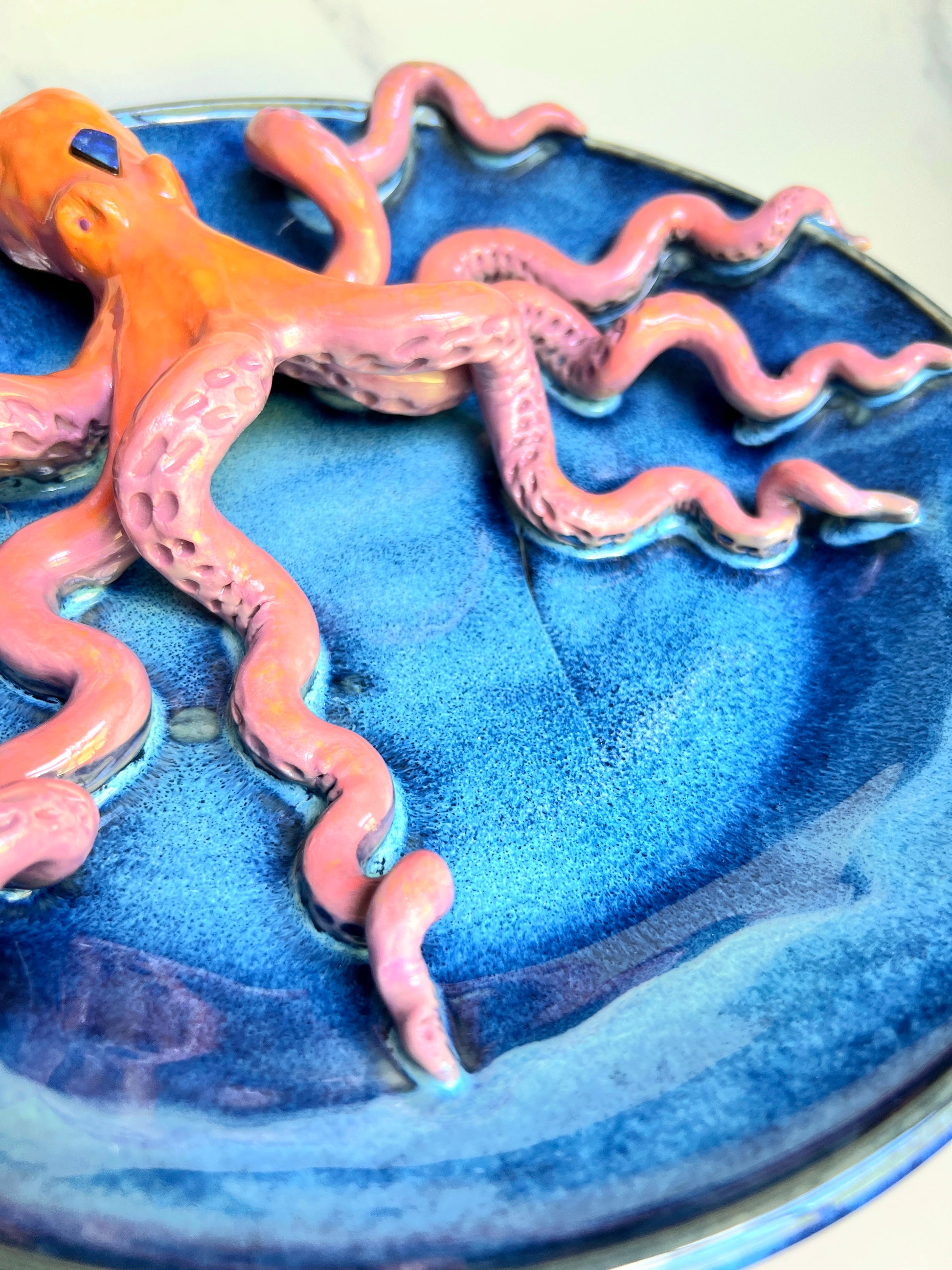 - This ceramic tray was hand thrown on the potters wheel and holds a hand sculpted octopus.
