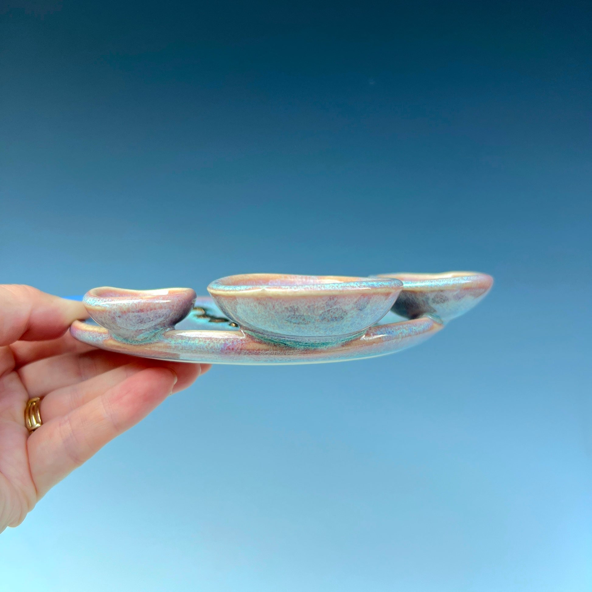 - Handwash this tray to keep the rainbow luster and real gold from deteriorating. It will last forever with the proper care.