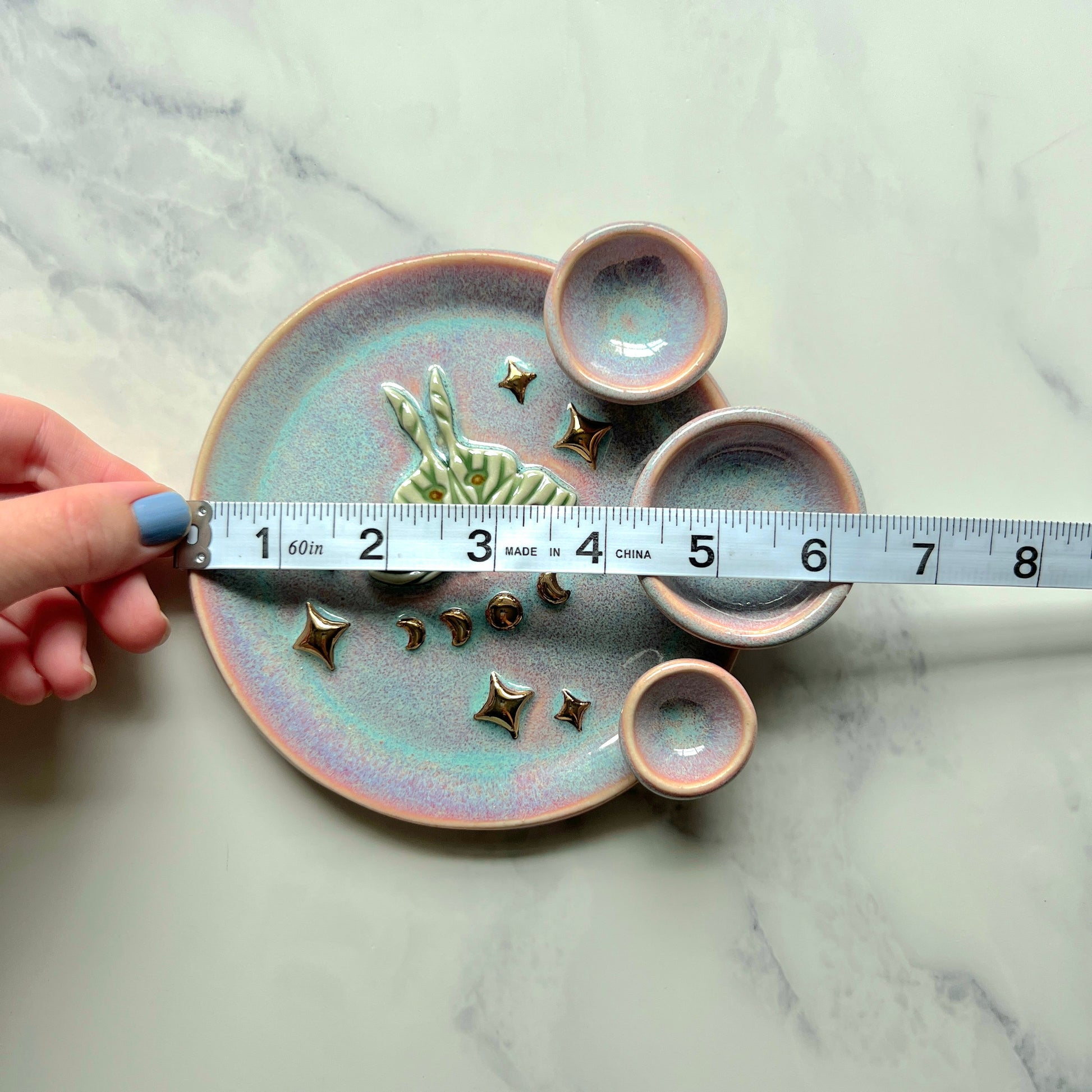 Luna Moth Dish Round Iridescent Altar Gold Star Jewelry Tray 3 Dish