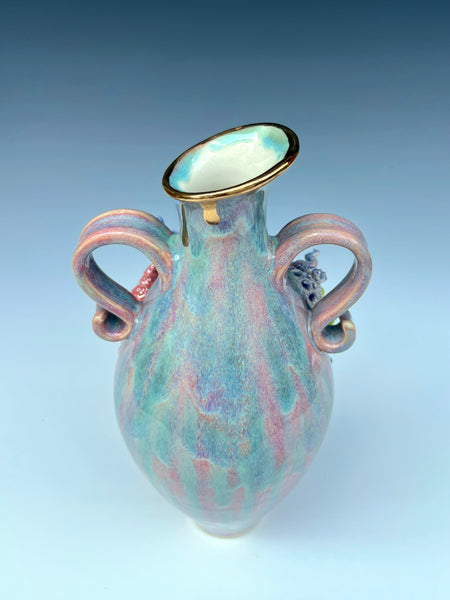- This handmade vase features an aura quartz crystal held by the octopus as well as natural ethionpian opal in a barnicle.