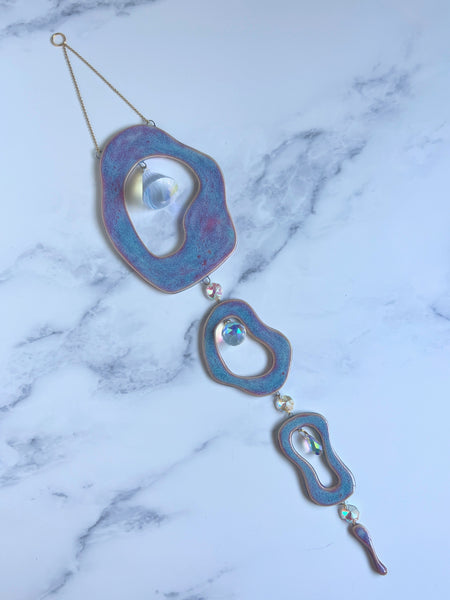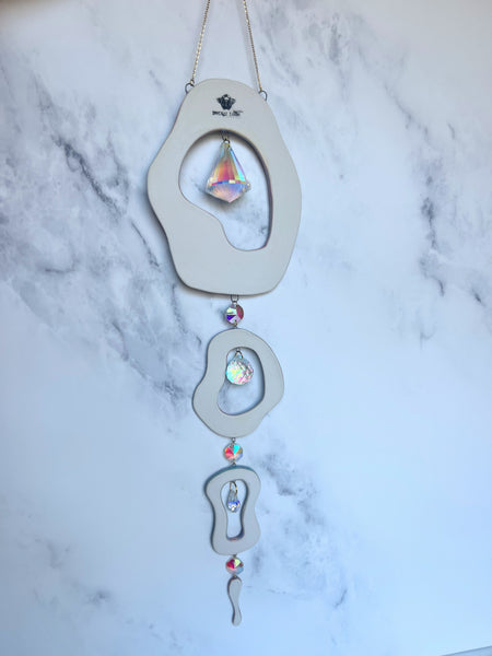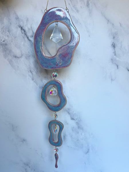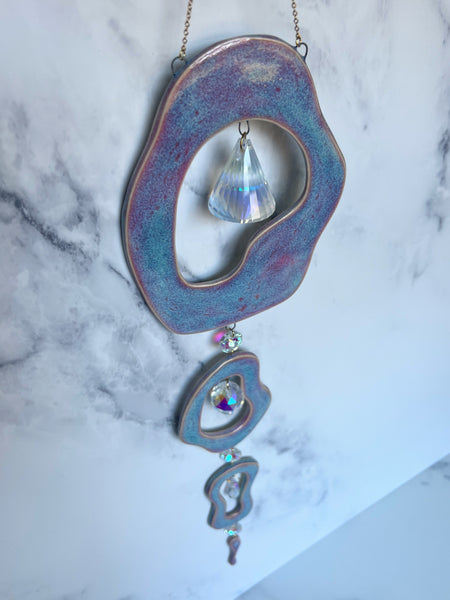 This is a handmade porcelain suncatcher with AB coated glass crystal prisms.