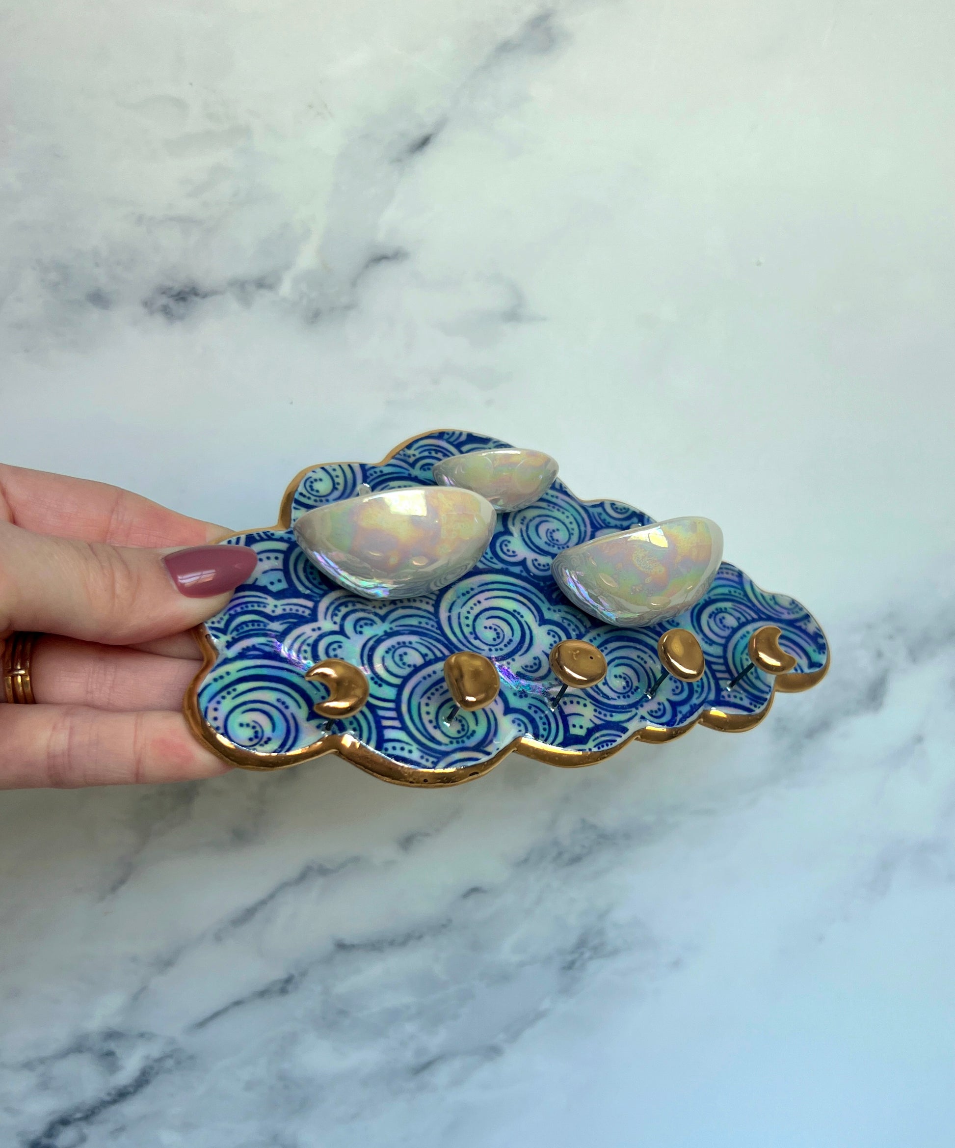 PRE-ORDER Cute Cloud Jewelry Wall Hanging Necklace Display with Ring Dishes