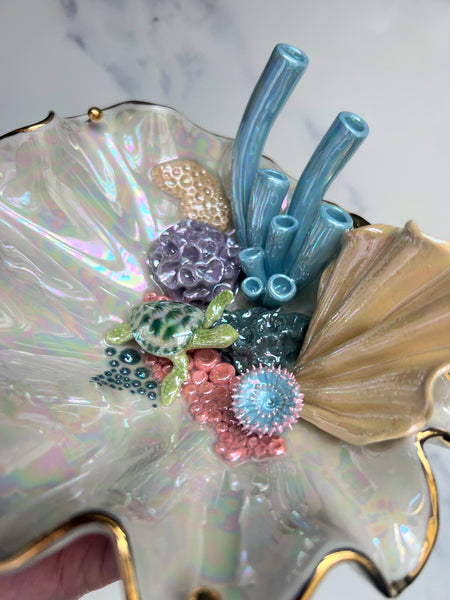 Every element of this porcelain shell dish has been hand sculpted and painted.