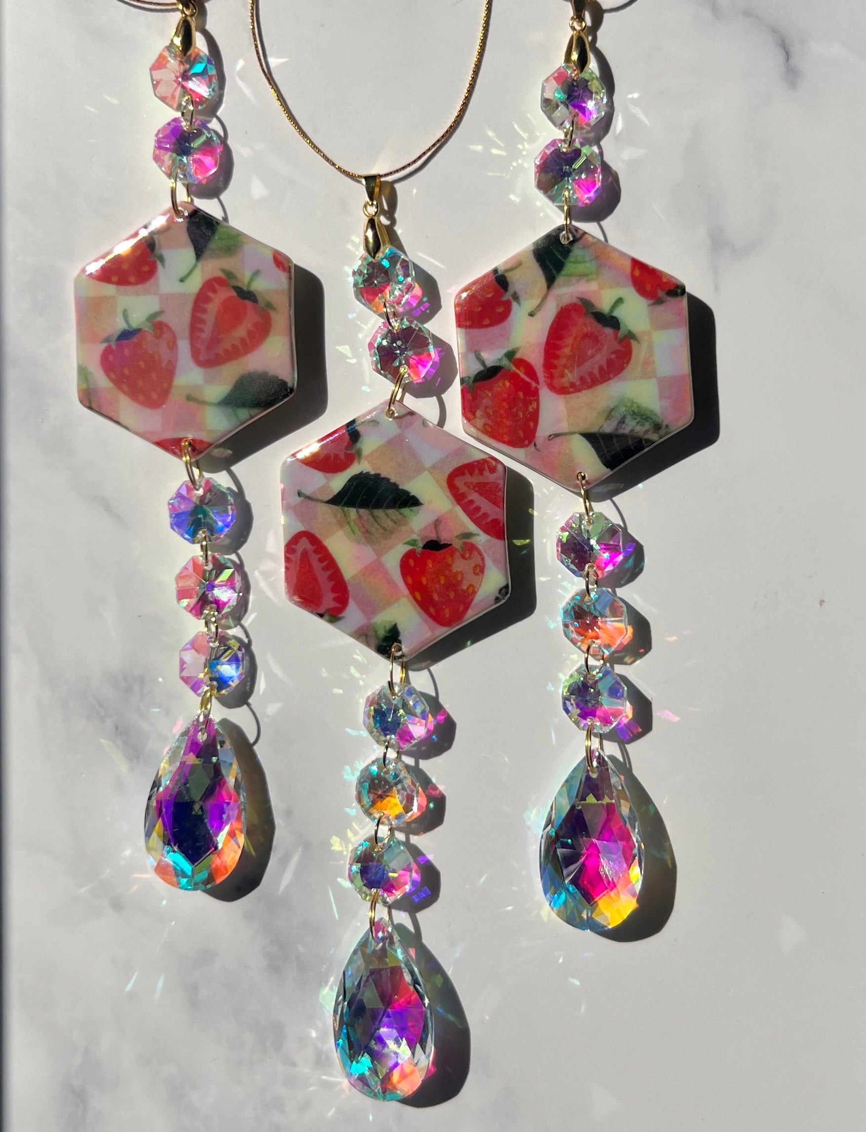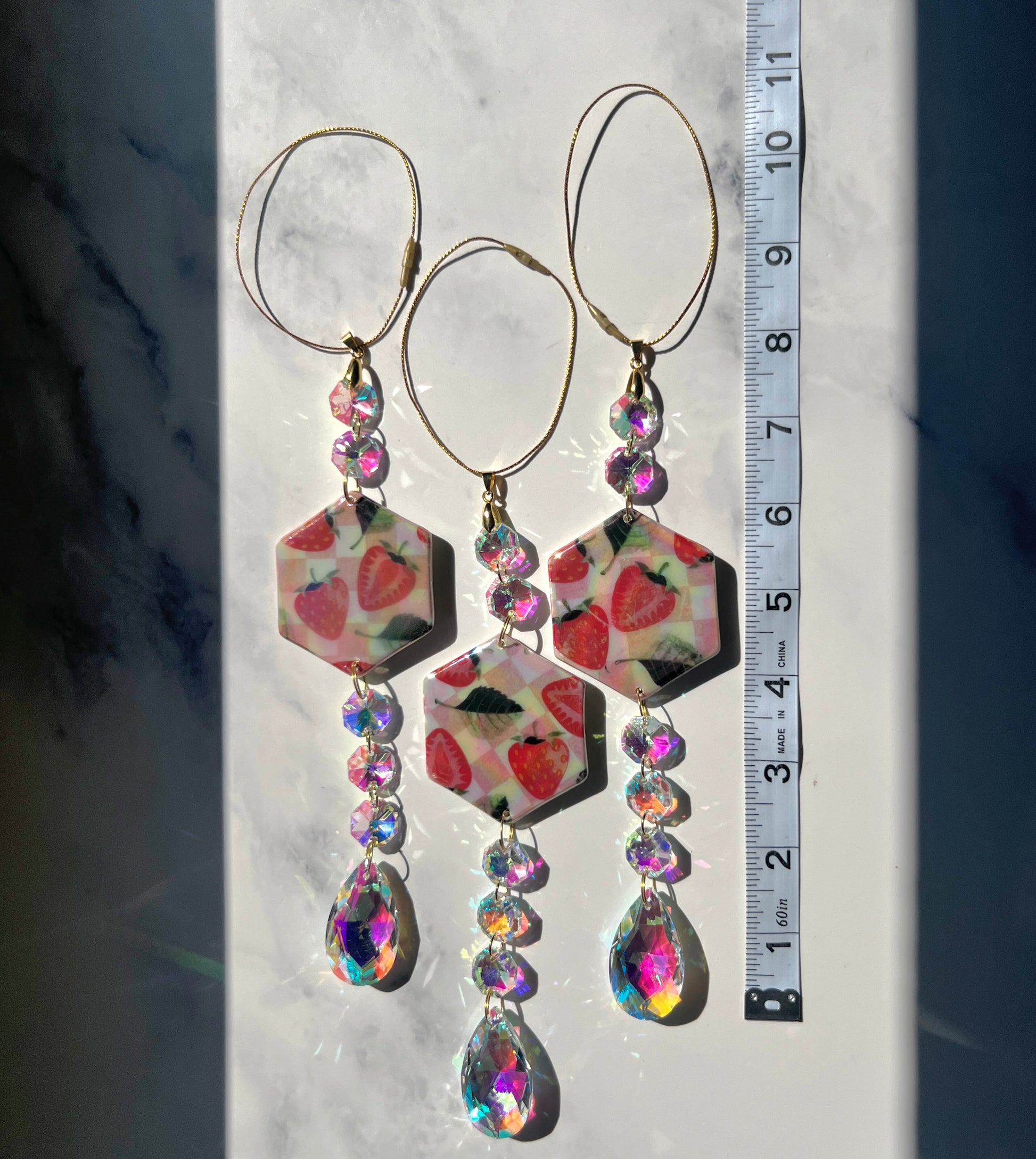 This is a beautiful handmade porcelain suncatcher with AB coated glass crystal prisms.