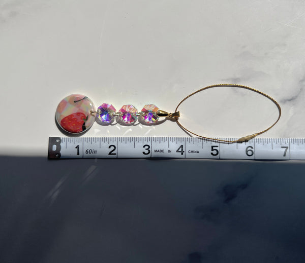 This is a beautiful handmade porcelain suncatcher with AB coated glass crystal prisms.