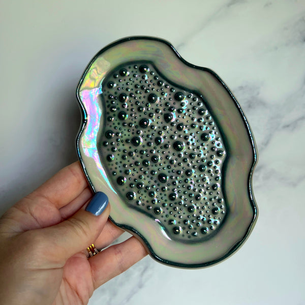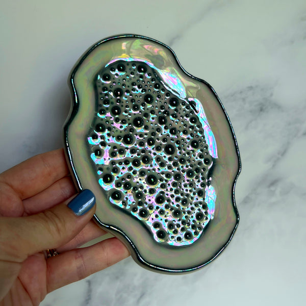 Textured Oval Dish Square Iridescent Altar Ring Jewelry Tray