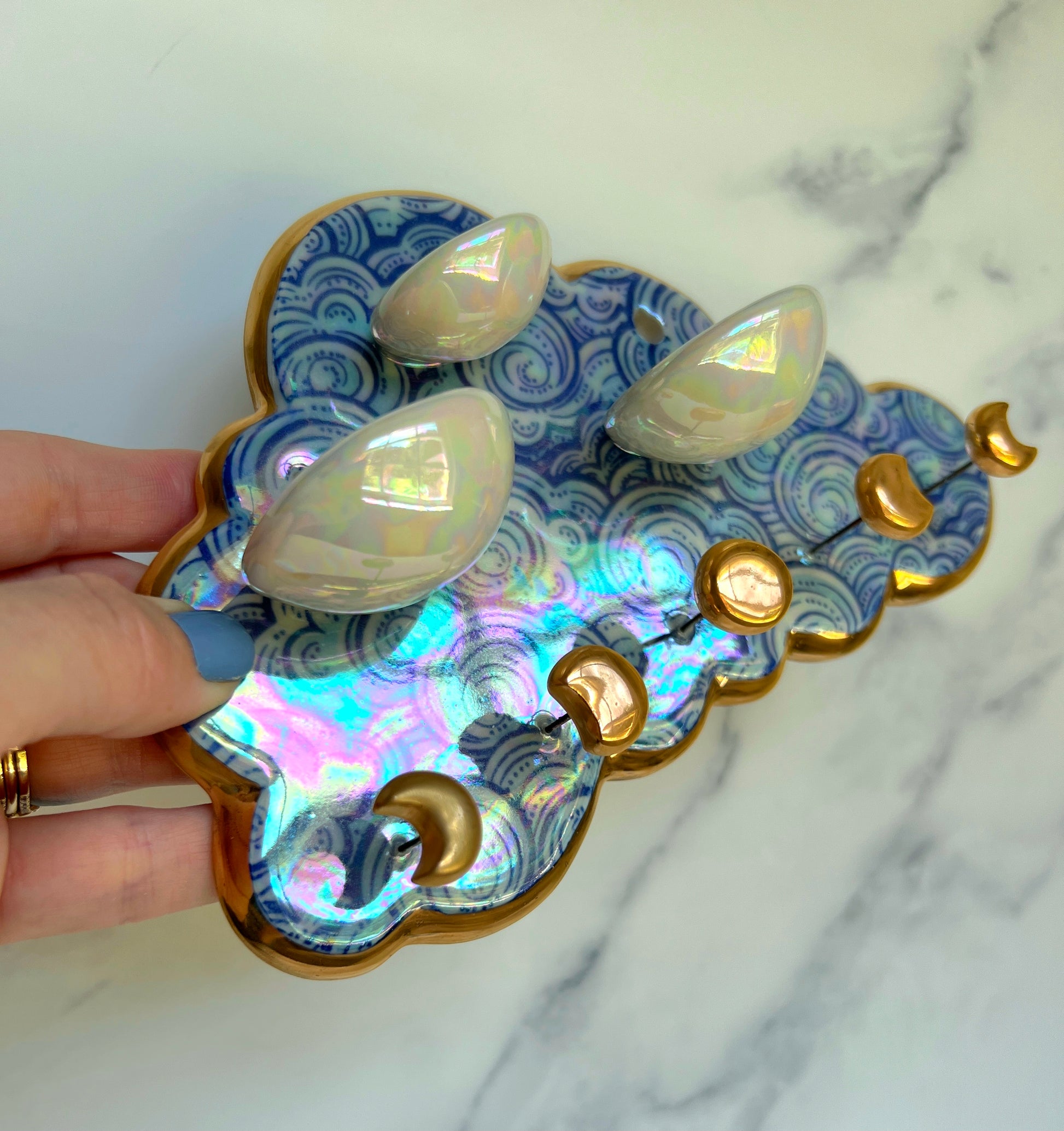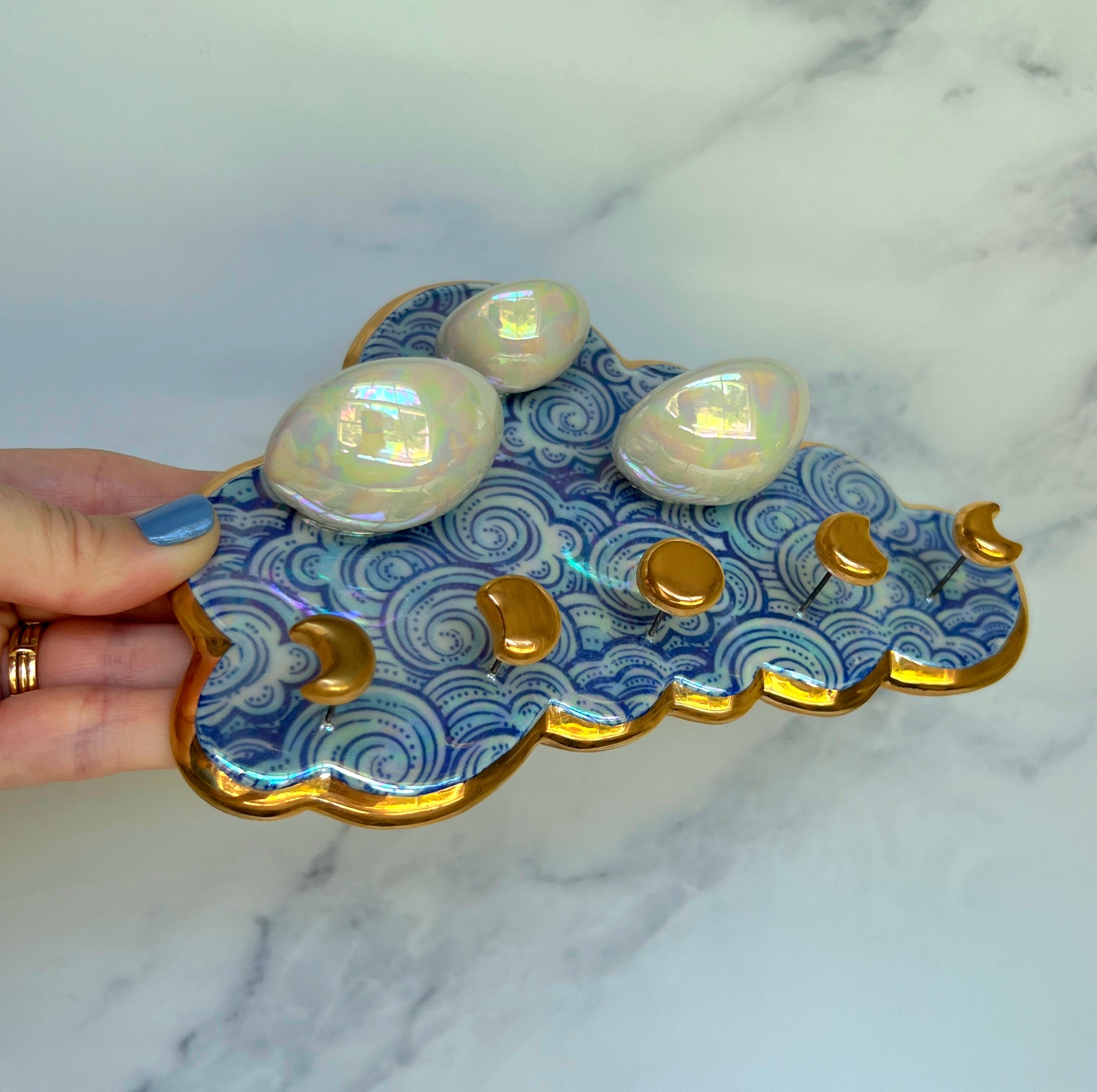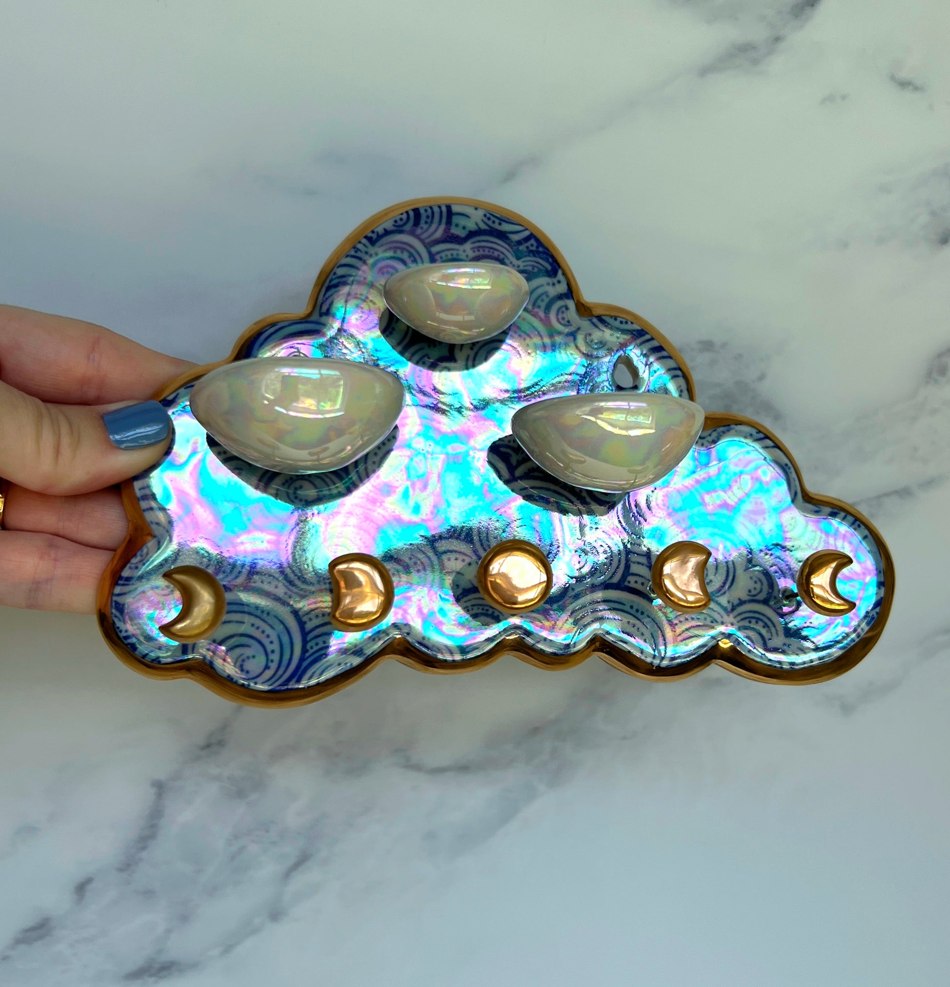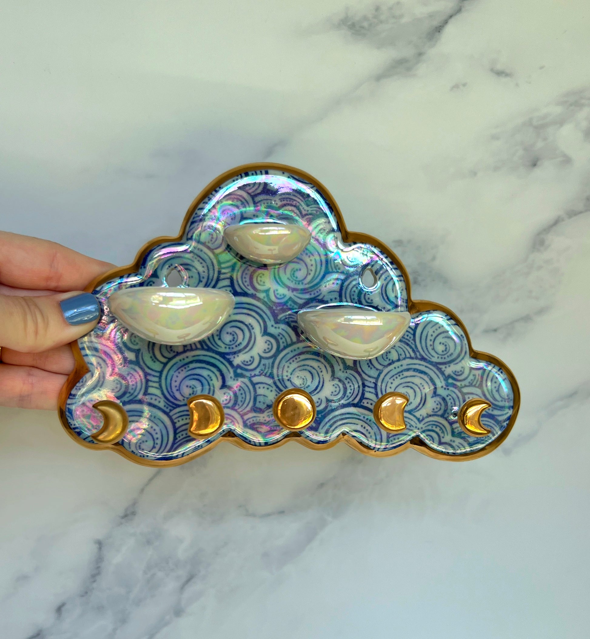 Very Slightly IMPERFECT 3 Dish Cloud Jewelry Wall Hanging Necklace Display with Ring Dishes #3
